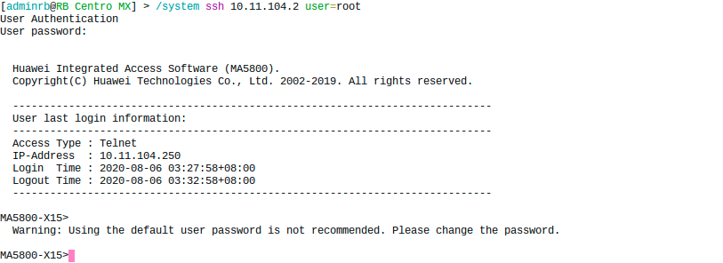 4.1 Ingresar por SSH con los datos default de la OLT.