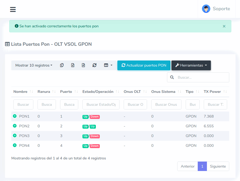 2 Estando en esta vista seleccionamos la opción Activar todos los puertos PON.