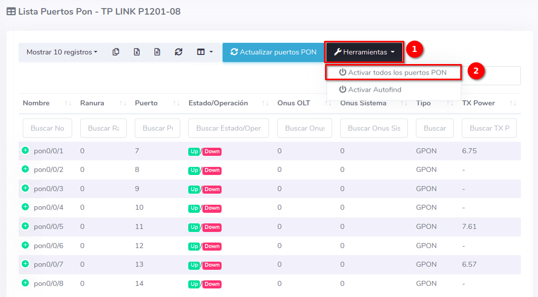 1 Ir a Lista de Puertos PON de nuestra OLT