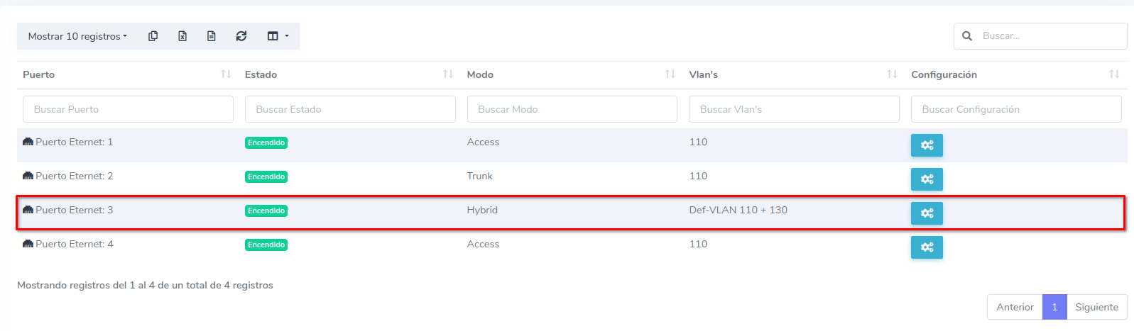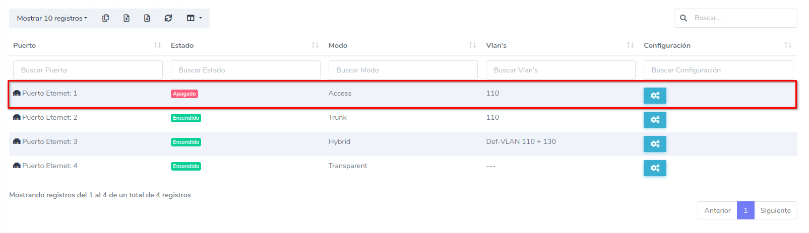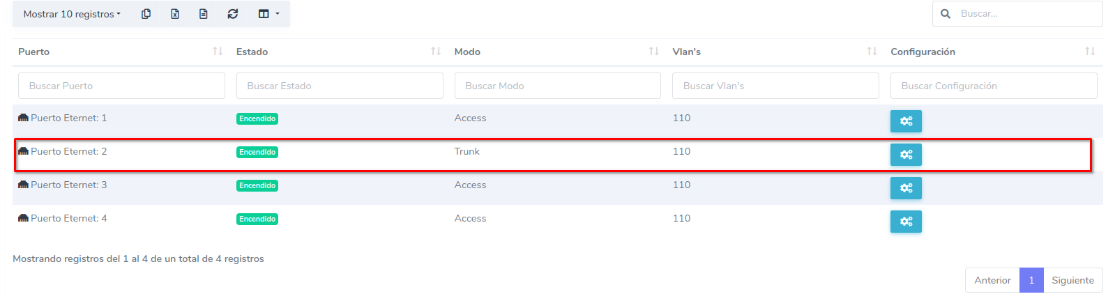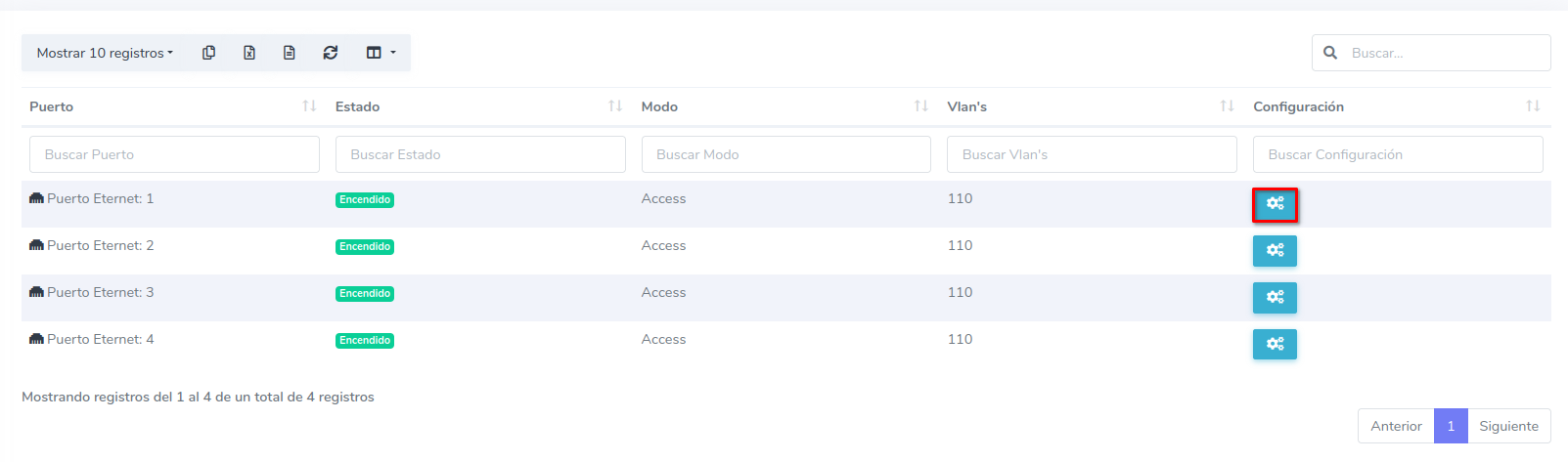 1 En Configuracion de puertos ETH dirijase al boton de configuración del puerto ETH que desee configurar