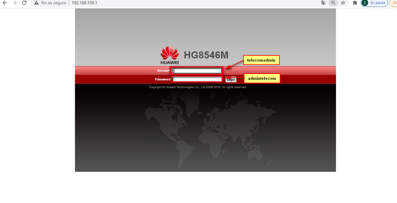 1 Accedemos al navegador y entramos a la interfaz de la ONU utilizando su IP por default 192.168.100.1