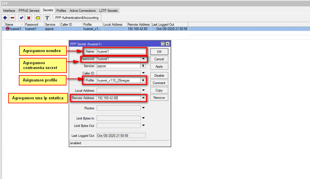 - 3.- Nombre del Secret creado en el MikroTik