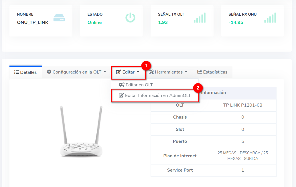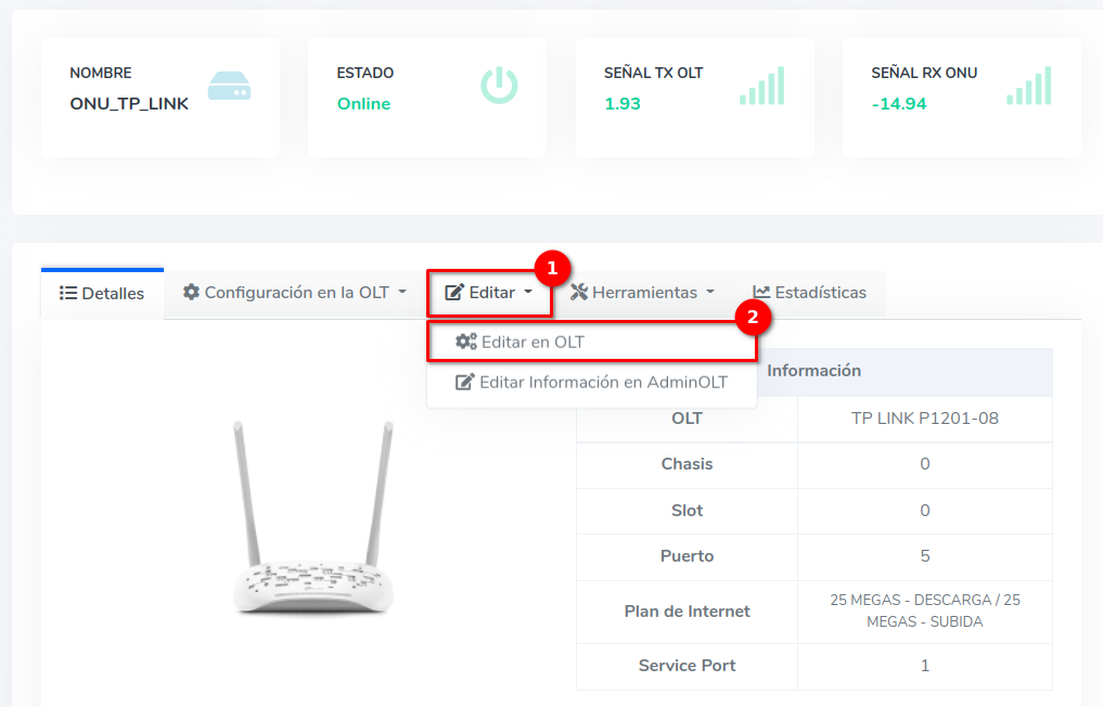 - Editar ONU en AdminOLT desde Detalles de ONU