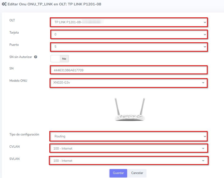 - Editar ONU en AdminOLT desde Lista de ONU's Autorizadas