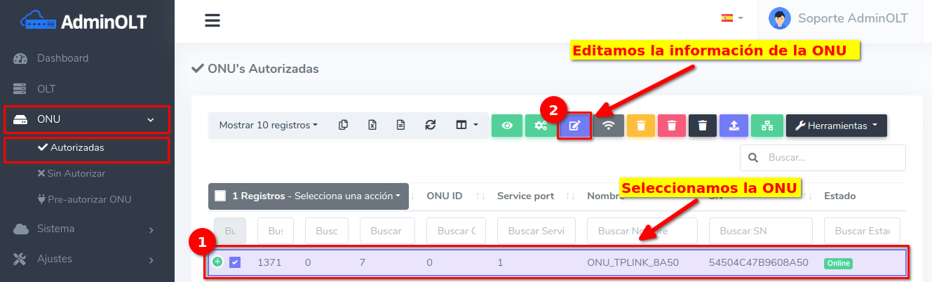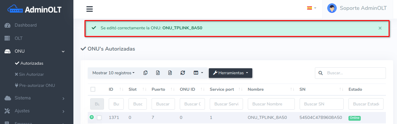 - Editar ONU en AdminOLT desde Lista de ONU's Autorizadas